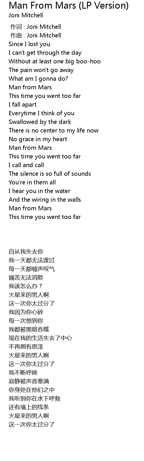 | [00:01.000] | zuò qǔ : Joni Mitchell |