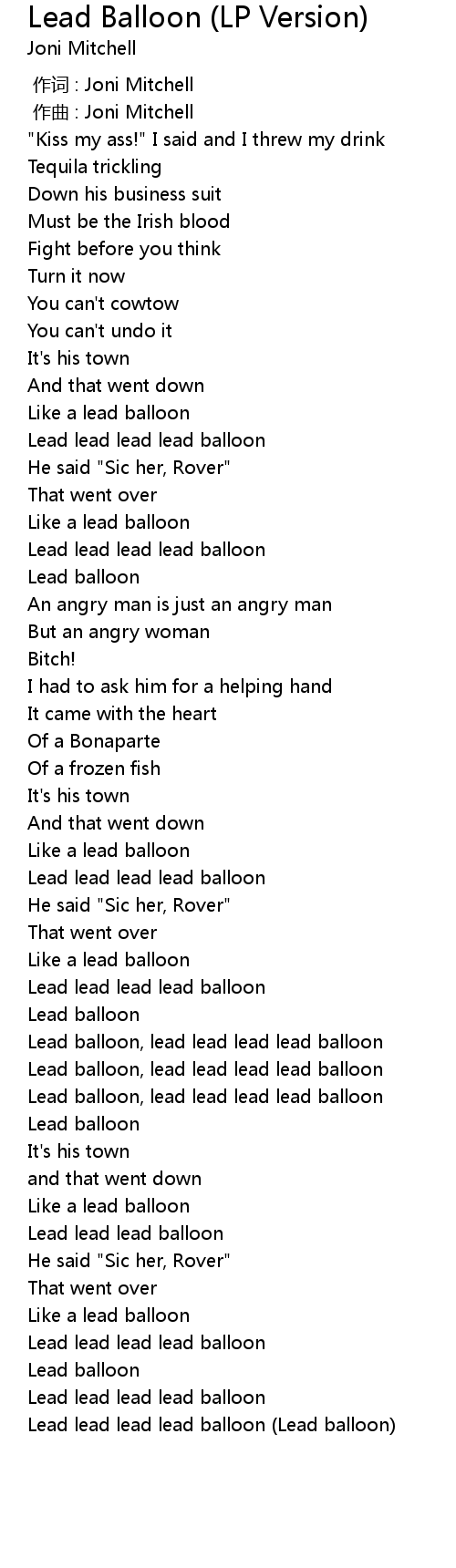 | [03:00.72] | Lead lead lead lead balloon Lead balloon |
