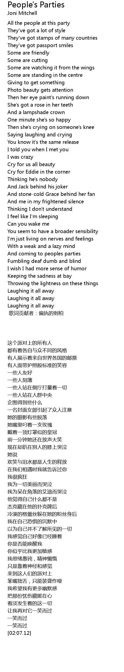 | [00:47.12] | Then she' s crying on someone' s knee |