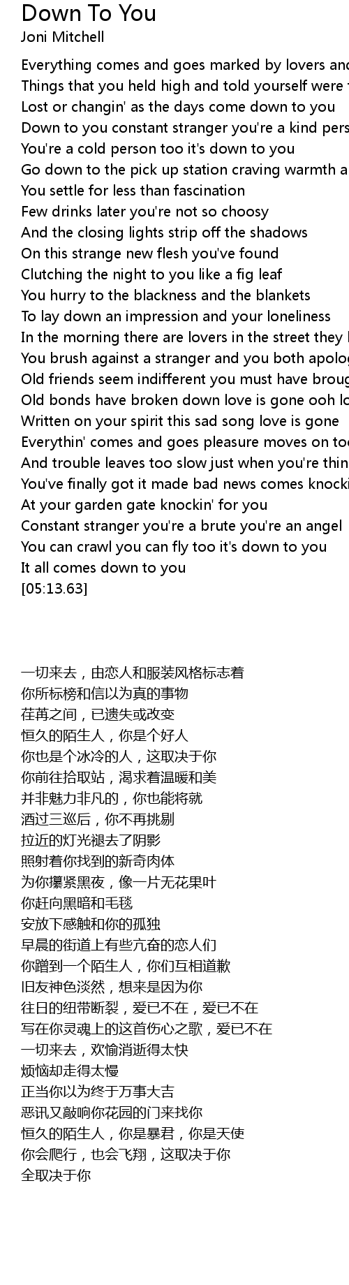 Down to you constant stranger you're a kind person |