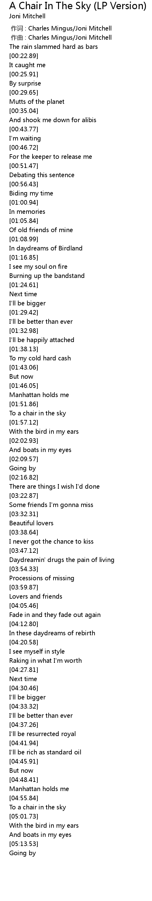 | [00:00.000] | 作词 : Charles Mingus/Joni Mitchell |