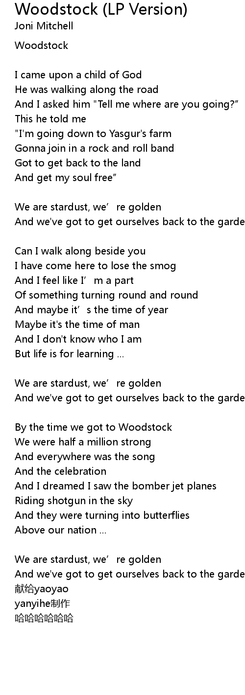 | 歌曲 | Woodstock (LP Version) |