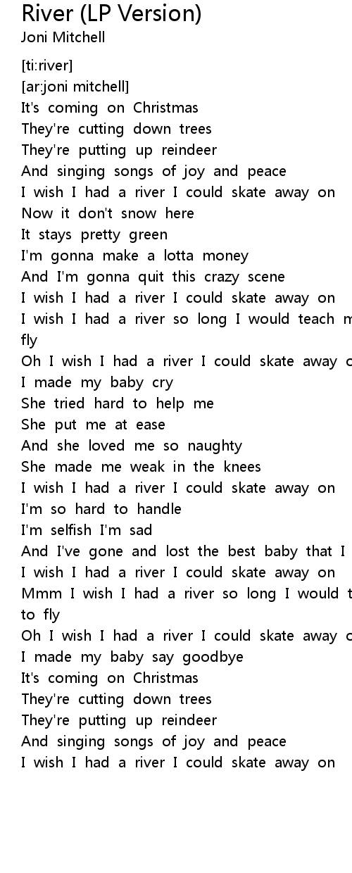 [02:12.22] Mmm I wish I had a river so long I would teach my feet to fly