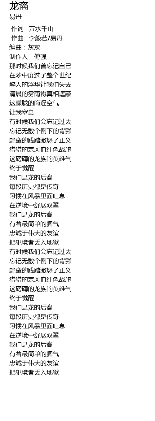 | [01:34.894] | wǒ men shì lóng de hòu yì |