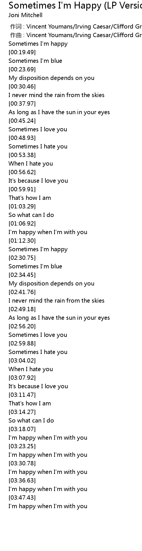 | [00:18.32] | Sometimes I'm happy |