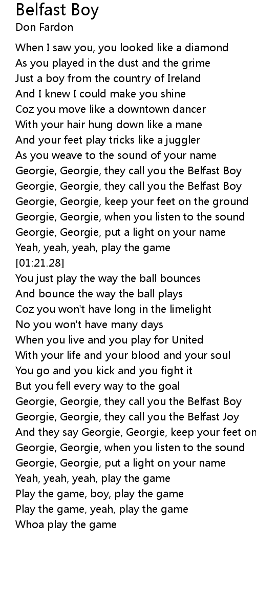 [02:02.63] Georgie, Georgie, they call you the Belfast Boy