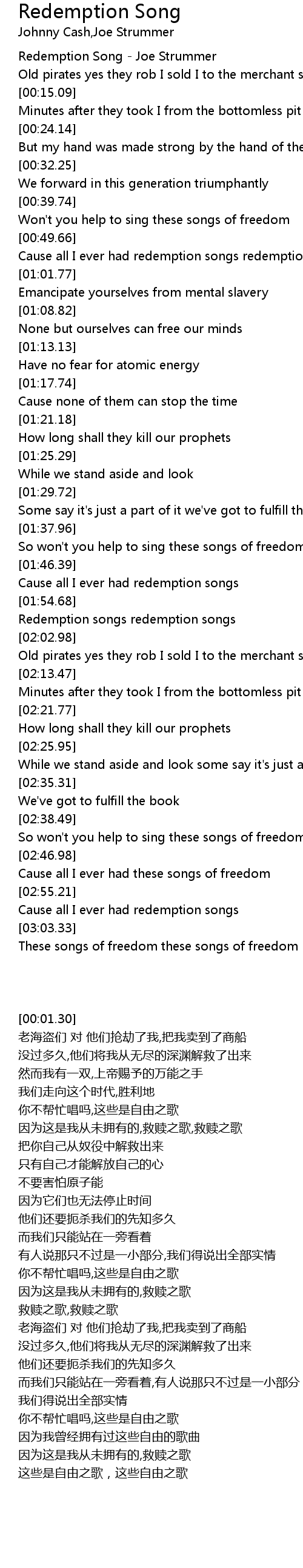 Redemption Song - Joe Strummer |