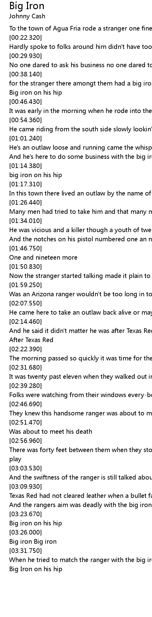 When he tried to match the ranger with the big iron on his hip The Big Iron on his hip |