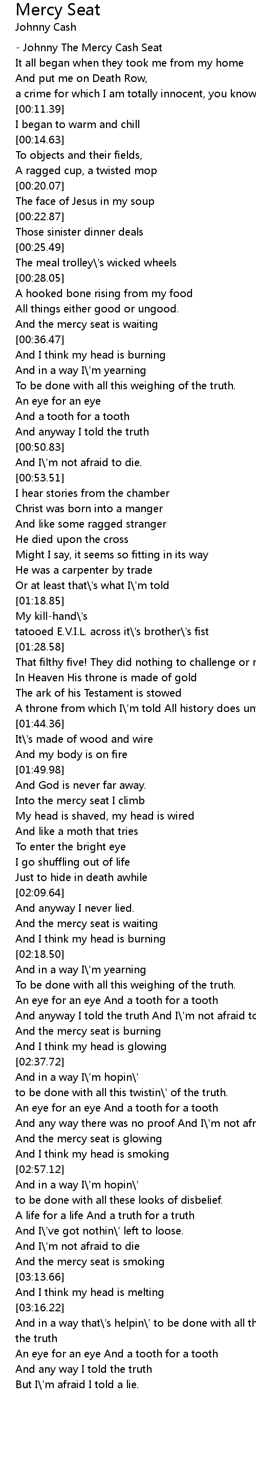 - Johnny The Mercy Cash Seat |