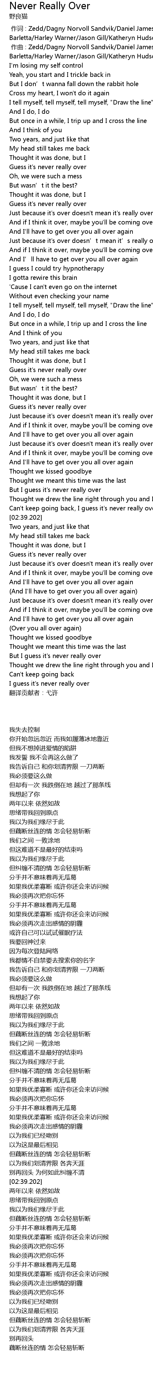 | 歌曲 | Never Really Over |