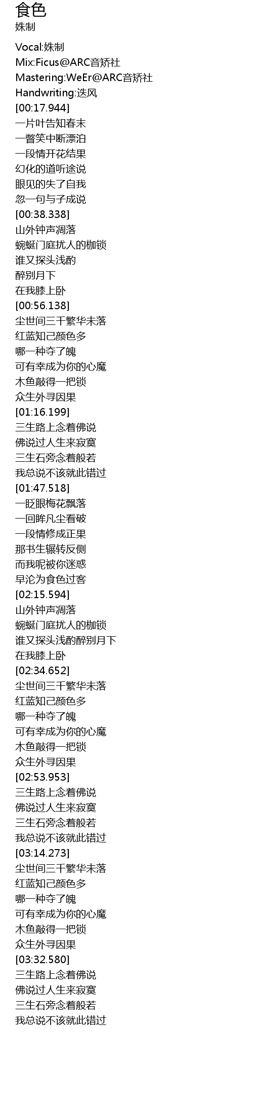 | [00:10.173] | Mastering: WeEr ARC yin jiao she |