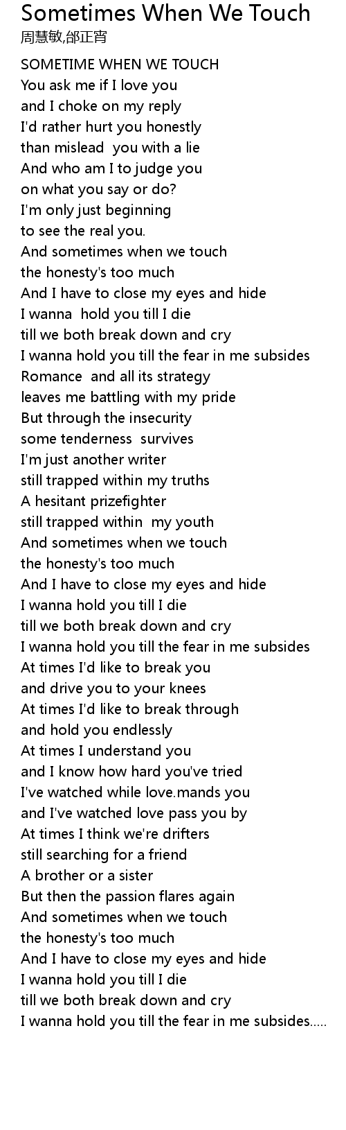 | [00:01.00] | SOMETIME WHEN WE TOUCH |