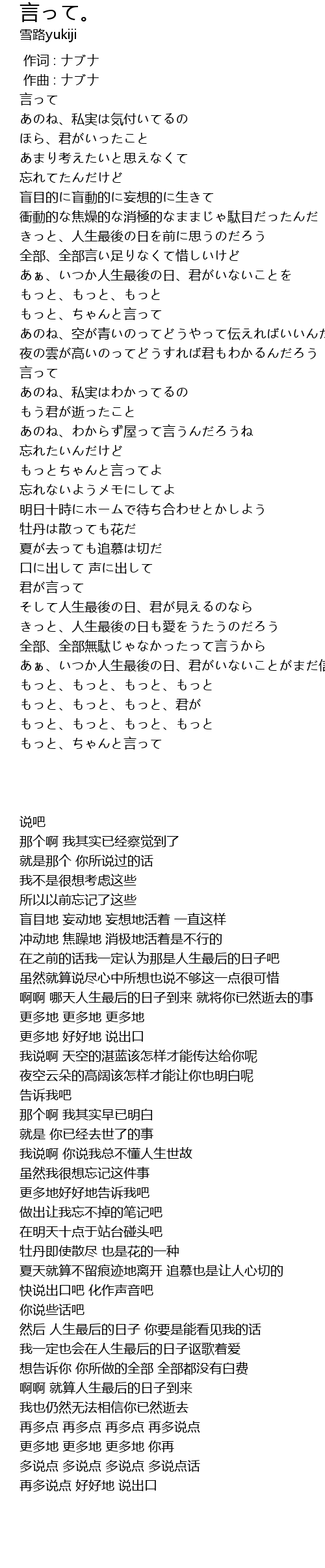 | [03:06.163] | 快说出口吧 化作声音吧 |