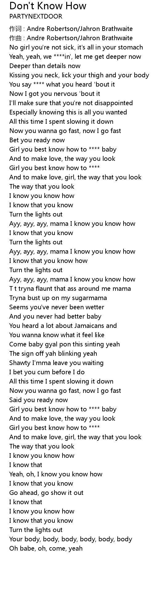| 歌曲 | Don't Know How |