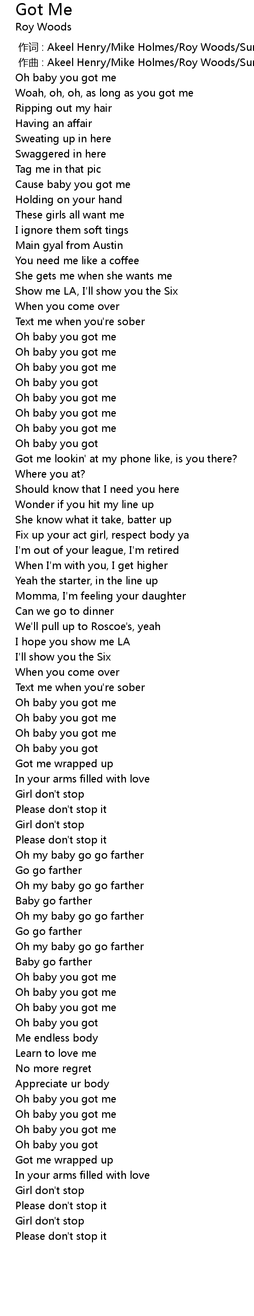 | [00:00.000] | zuò cí : Akeel Henry Mike Holmes Roy Woods Sunny Khokar |