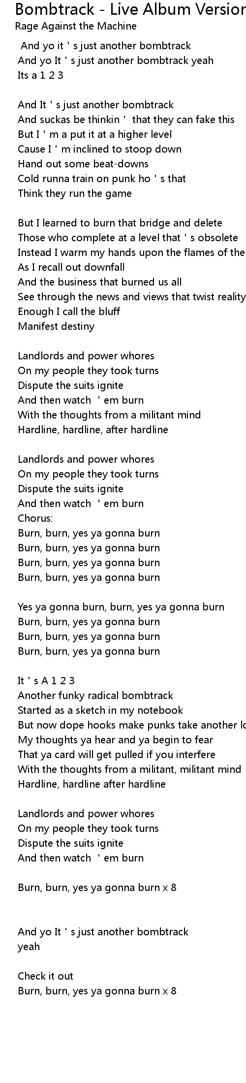 | Yes ya gonna burn, burn, yes ya gonna burn | |