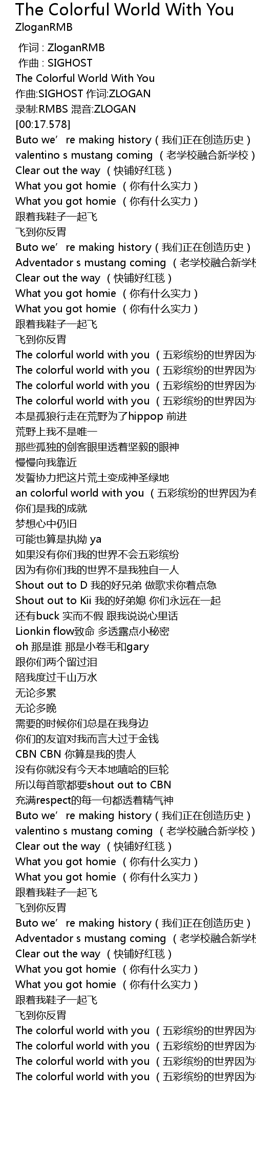 | [02:33.948] | The colorful world with you (五彩缤纷的世界因为有你) |