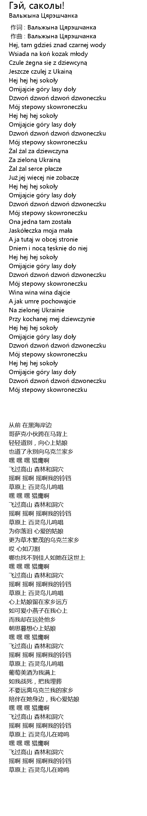 | [00:00.000] | 作词 : Вальжына Цярэшчанка |