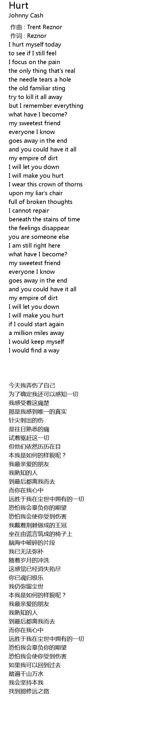 | [00:00.00] | I hurt myself today |