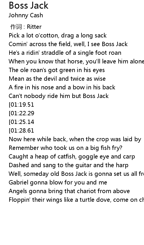 | [00:30.17] | Can't nobody ride him but Boss Jack |