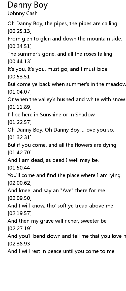 Oh Danny Boy, Oh Danny Boy, I love you so. |