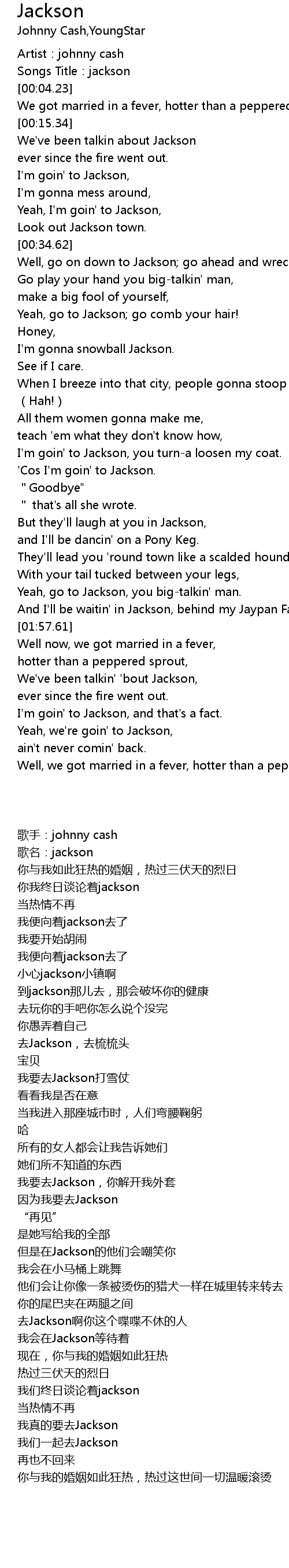 | [02:14.89] | I'm goin' to Jackson, and that's a fact. |