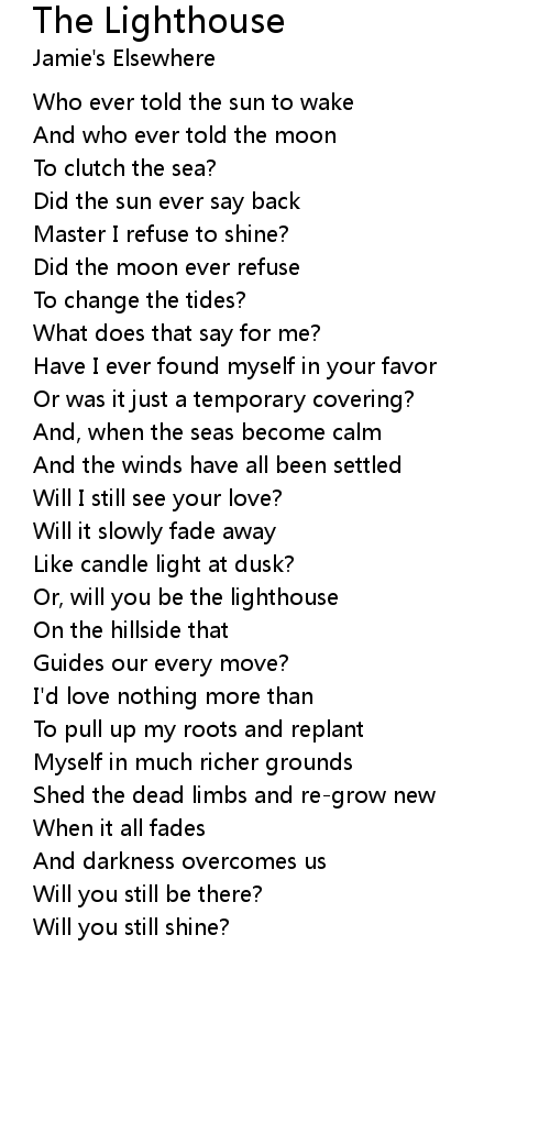 Or, will you be the lighthouse |