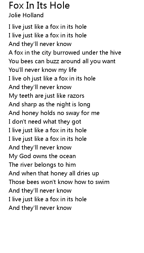 I live just like a fox in its hole |