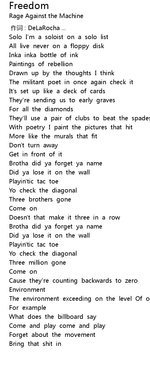 | [00:00.00] | zuò cí : DeLaRocha ... |