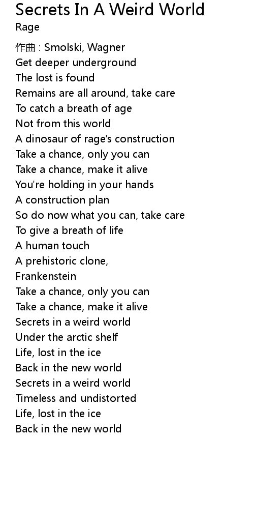 | 歌曲 | Secrets In A Weird World |