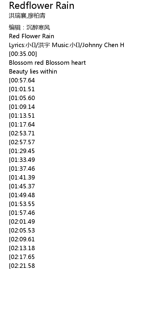 | [00:15.00] | Red Flower Rain |