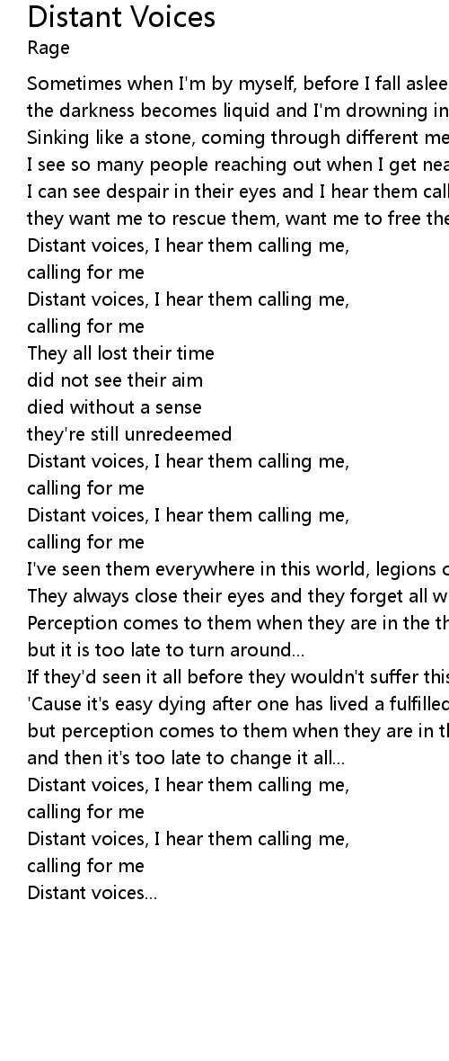 Distant voices, I hear them calling me, |