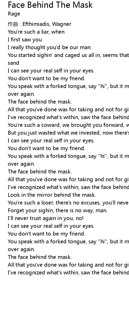 | 歌曲 | Face Behind The Mask |
