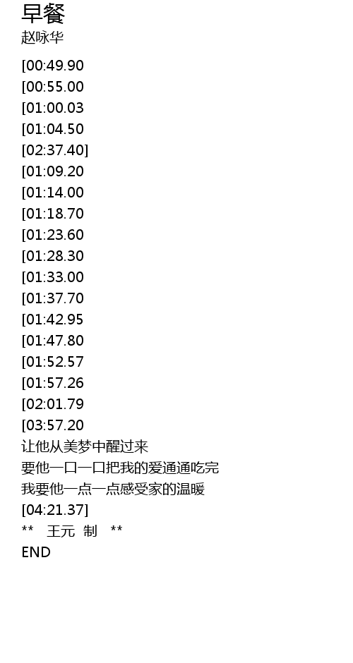 | [03:33.45][01:47.80] | 为心爱的人做一份早餐 |