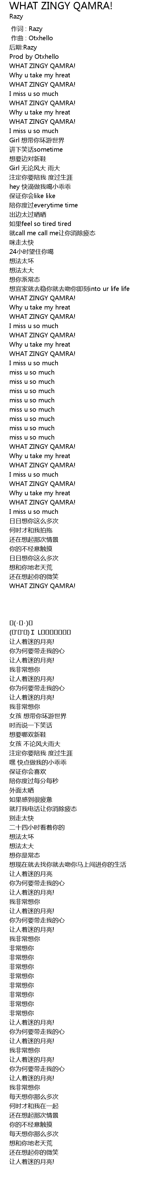 | 歌曲 | WHAT ZINGY QAMRA! |