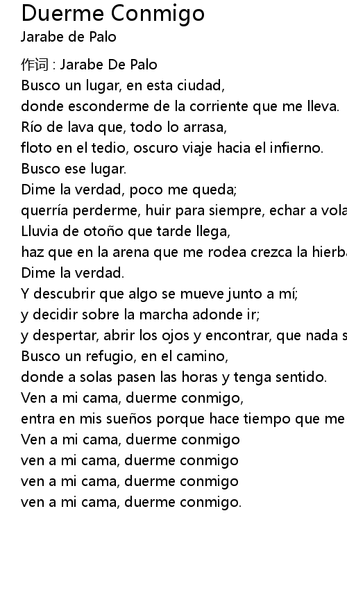 | Ven a mi cama, duerme conmigo, | |