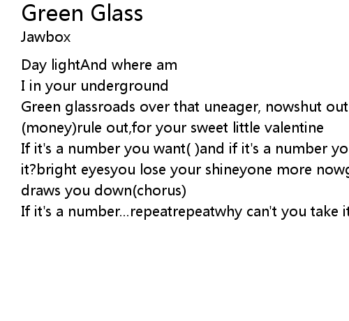 | If it's a number you want( )and if it's a number you wantwhy can't you take it?bright eyesyou lose your shineyone more nowgreen glassrefracts the glass and draws you down(chorus) | |