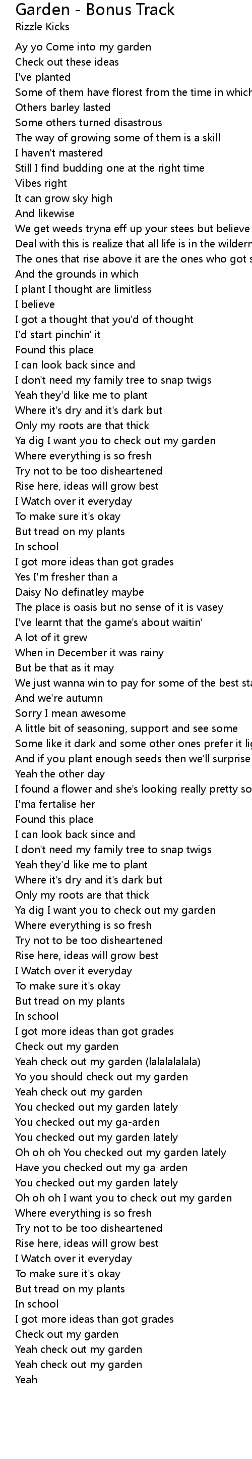 Yeah check out my garden (lalalalalala)