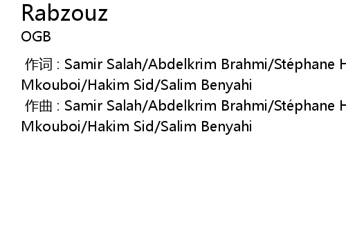 | [00:00.000] | 作曲 : Samir Salah/Abdelkrim Brahmi/Stéphane Holz/Housni Mkouboi/Hakim Sid/Salim Benyahi |