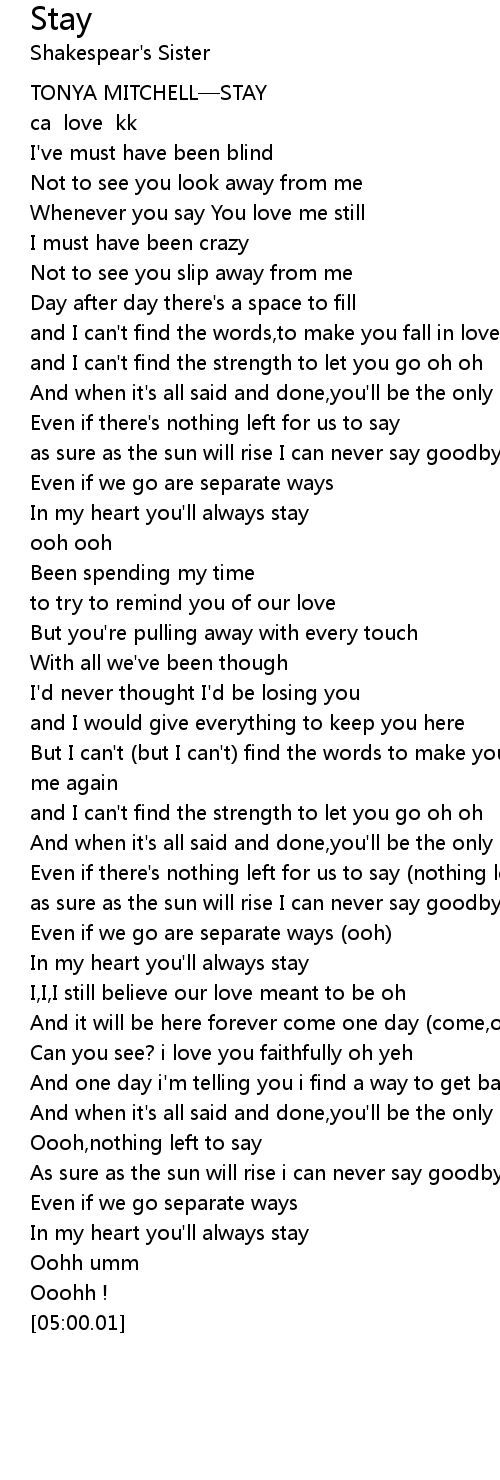 | [00:00.00] | TONYA MITCHELL—STAY |