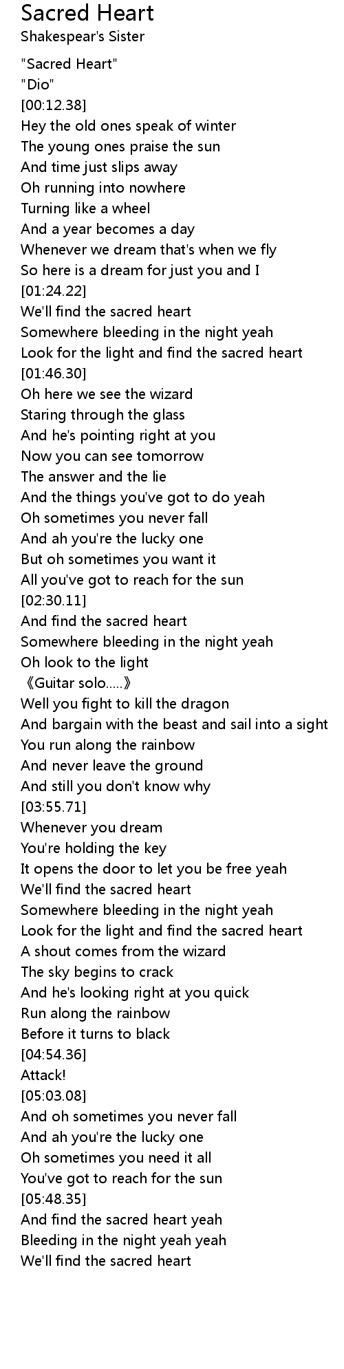 | [00:00.10] | "Sacred Heart" |