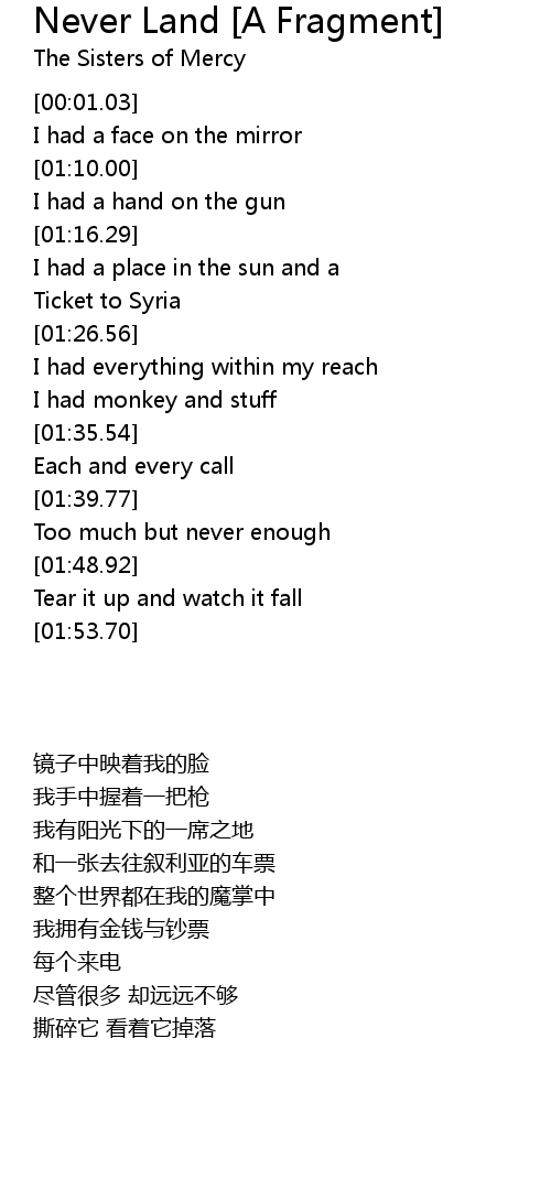 | [01:23.70] | 和一张去往叙利亚的车票 |