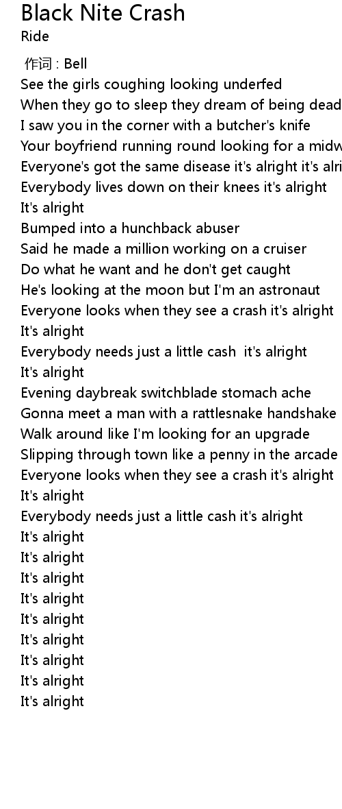 | [01:10.57] | Everyone looks when they see a crash it' s alright |