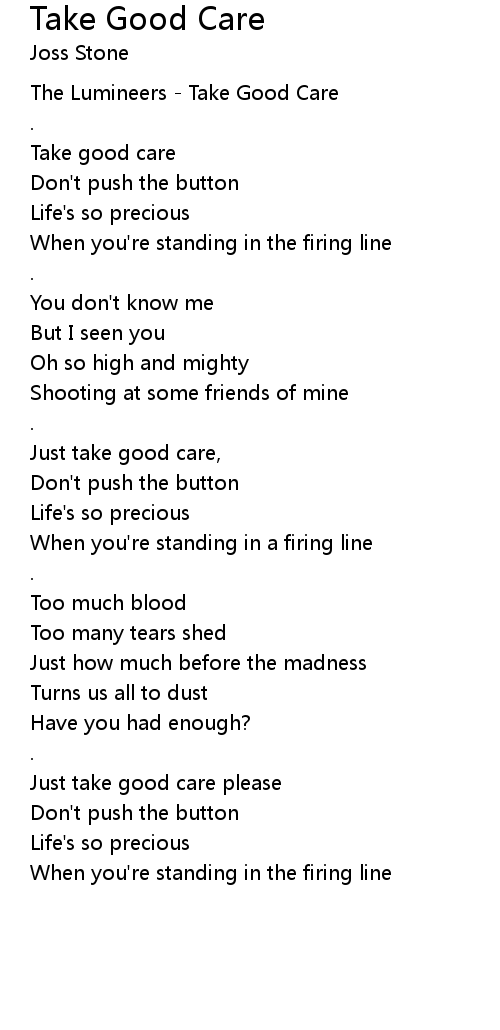 Just take good care please |