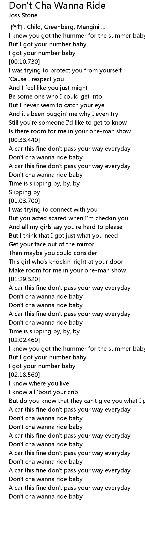 | [00:01.630] | I know you got the hummer for the summer baby |