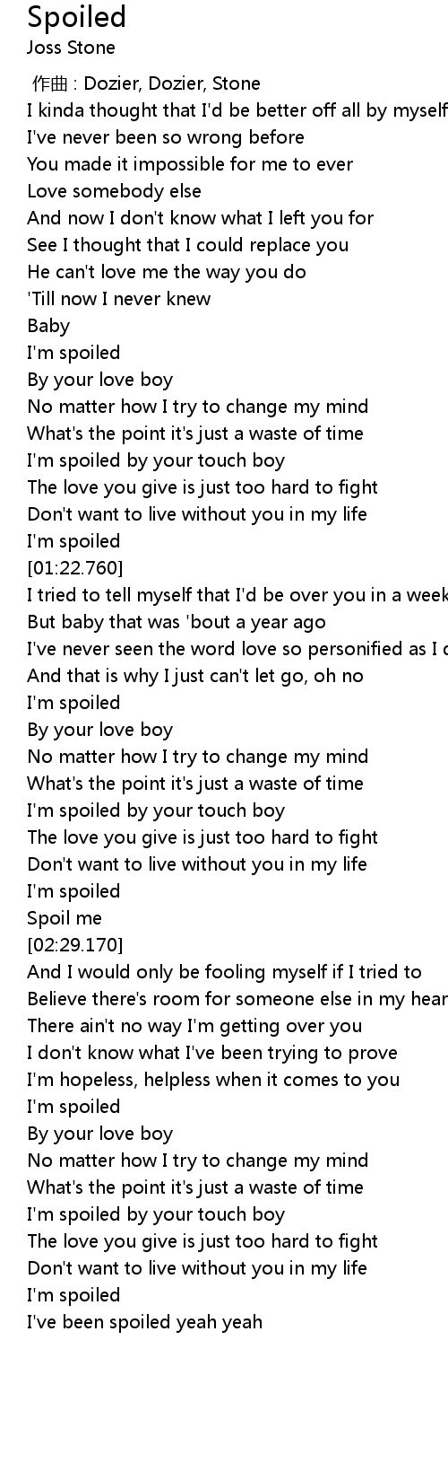 | [02:23.740] | I' m spoiled |