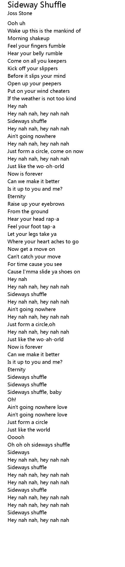 Oh oh oh sideways shuffle |