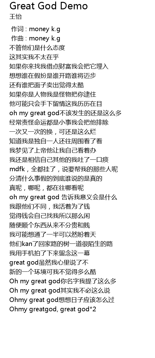| 歌曲 | Great God Demo |