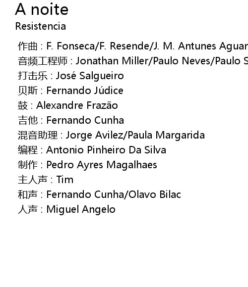 | [00:00.000] | zuò qǔ : F. Fonseca F. Resende J. M. Antunes Aguardela M. Miranda |