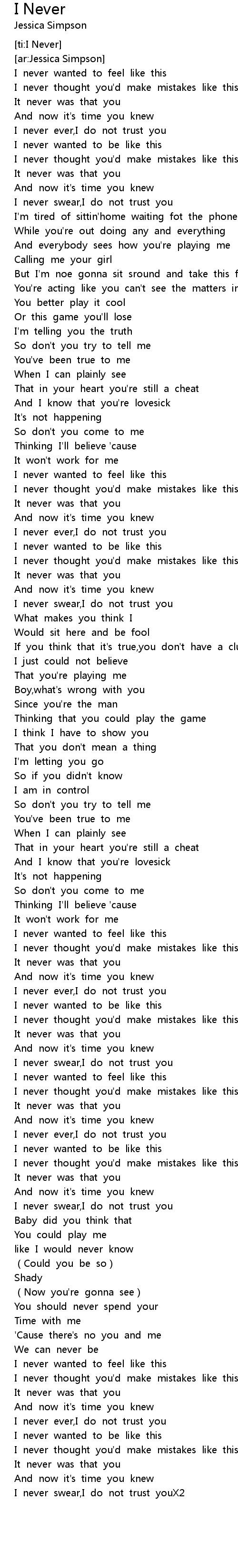 | [00:19.26] | I never ever,I do not trust you |